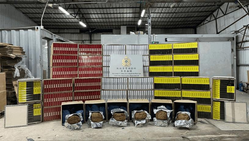 香港海關昨日(18日)分別在元朗和天水圍進行反私煙行動,連環搗破兩個懷疑私煙貯存倉庫,檢獲共約360萬支懷疑私煙和約130公斤懷疑未完稅製成煙草,估計市值共約1400萬元,應課稅值共約960萬元。