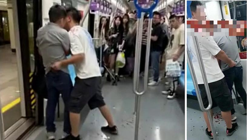 網傳上海地鐵發生乘客互毆事件。周日(17日)網傳影片顯示:上海地鐵9號線兩名男子疑因座位問題起爭執互毆,其中一名男子受傷流血。地上的鮮血由地鐵車廂一直延伸至月台。
