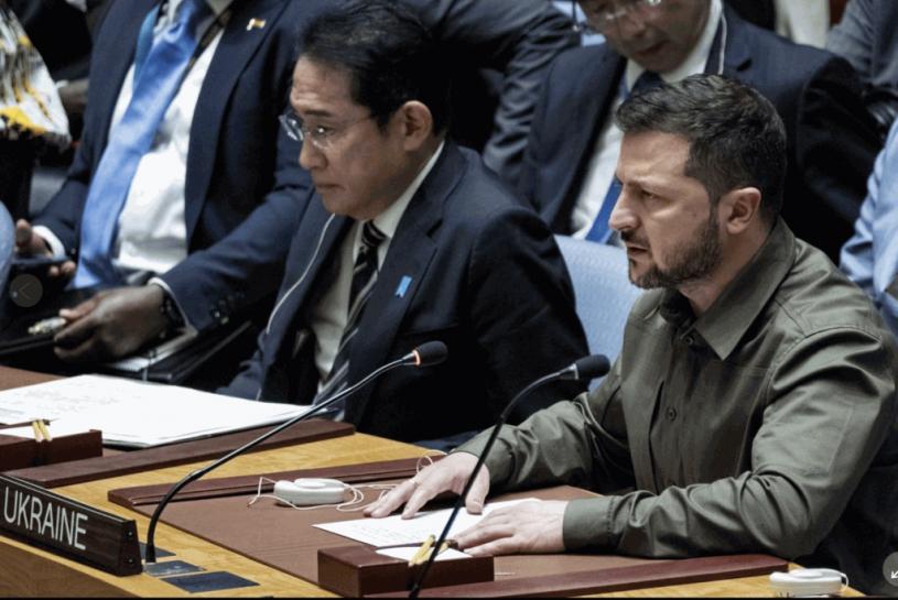 這是俄烏戰爭後,澤連斯基首次與俄國官員同場。按聯合國章程,安理會成員國元首必須出席會議,但可以由任何經認可的外交官代替。烏克蘭不是成員國,今次是受邀發言。
