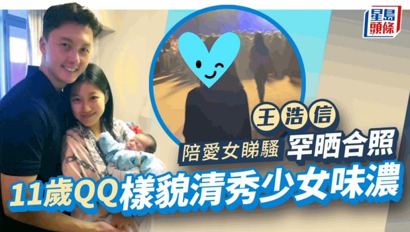 王浩信早前返港曾激罕晒出女兒QQ的「正面照」,雖然眼睛以貼圖遮上,但仍可看到QQ的可愛包包面,而且皮膚白皙似足父母。