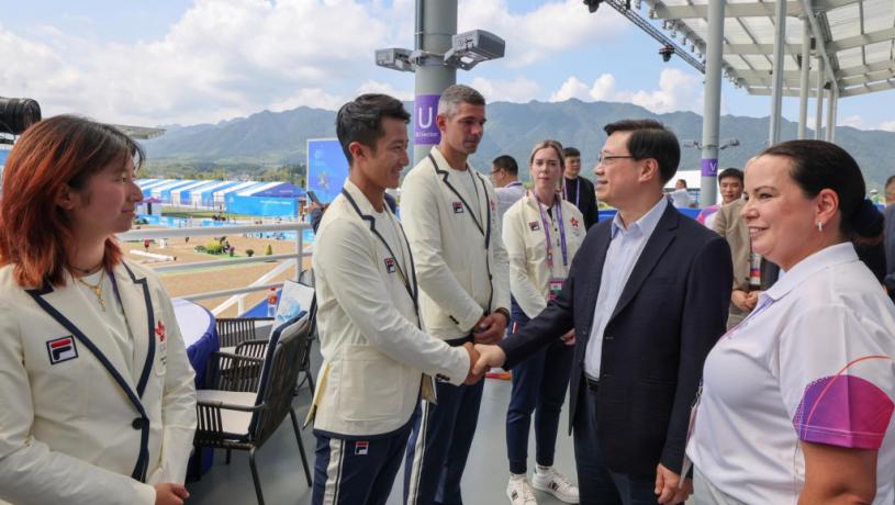 展望2025年第15屆全國運動會,將歷史性由香港與廣東及澳門三地聯合承辦,李家超表示,這是香港展現實力和活力的良機,指特區政府會帶領社會各界積極籌備,貢獻國家蓬勃體育發展,向世界講好中國體育故事。