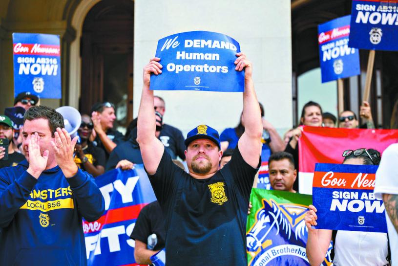 在州內擁有25萬名會員的國際卡車司機兄弟工會稱,法案被否決,可能會導致加州有35萬名司機失業。