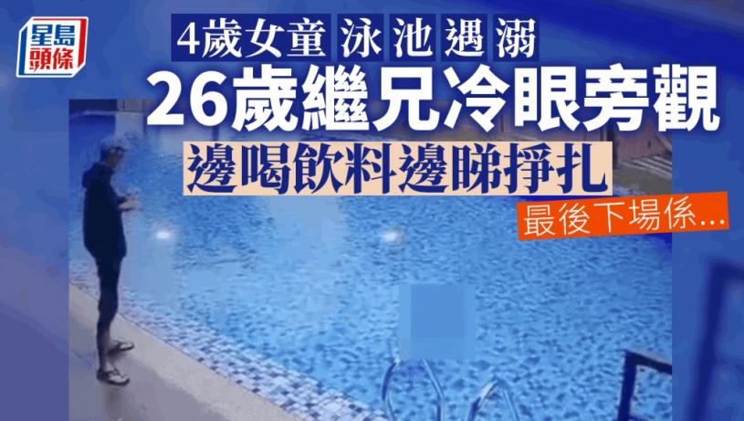 小女孩的繼兄這時走近泳池,看著女童快將沒頂,卻沒有下水趕急救人或叫救援,反而是一幅冷眼旁觀的樣子,邊繼續喝著飲料,邊站在池邊看著妹妹在水中拼命掙扎。女童其後被送入加護病房搶救,一天後宣告不治。