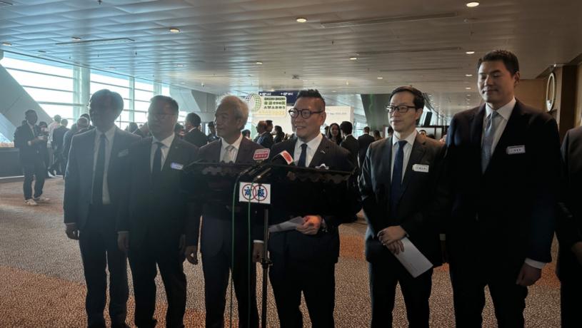 廠商會會長史立德(右三)透露正與新疆洽談,力求讓新疆的產品出現在工展會上。常彧璠攝