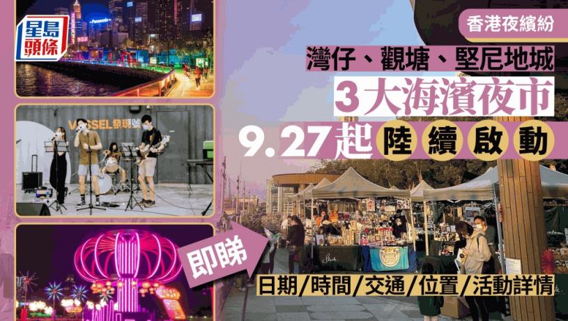 為推動夜經濟,政府早前宣布舉辦一系列「香港夜繽紛」活動。發展局聯同不同機構在灣仔、觀塘、堅尼地城3個海濱場地舉辦夜市,最早的夜市由明日(27日)起開始舉行,本文總括3大國慶中秋夜市的活動概覽,包括舉辦日期、時間、地點、活動詳情、位置及交通資料等。另亦有10月及11月觀塘和堅尼地城兩個海濱的其他夜市及活動詳情。