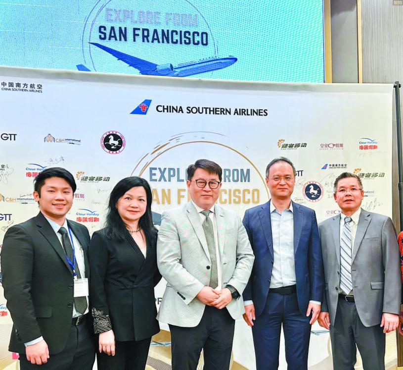 9月21日,美國華商總會會長孫志雄、常務副會長譚念帖、副會長孫志中,應邀參加南方航空公司(如下簡稱南航)在南三藩市半島豪苑舉辦的「南方航空產品推介會」,受到主辦方南航北美主管李翔總裁等熱情招待,出席是日推介會的還有:美國企業家聯誼會會長何華斌等嘉賓,南方航空集團客戶經理伍偉明等,列位贊助商、皇室假期、環宇旅遊、文景假期等客服售票點負責人等,賓主歡聚一堂,為南方航空在舊金山的業務發展而集思廣益。