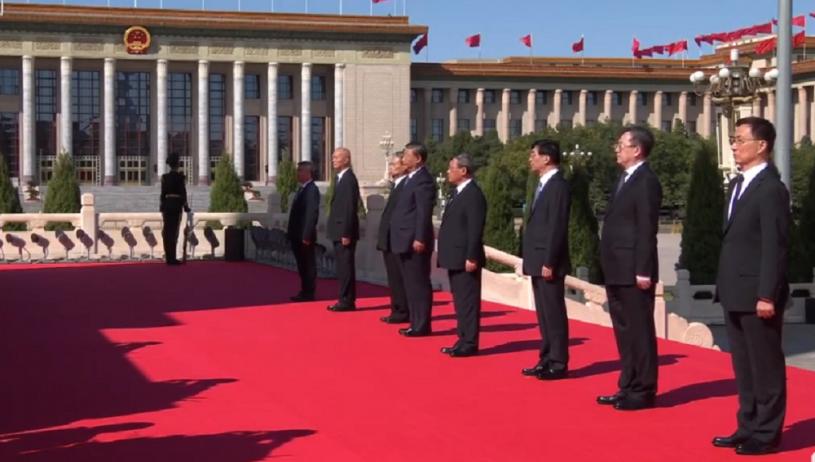 習近平等人步上基座向人民英雄致敬,之後緩步繞行,各界代表依序在紀念碑前獻花。