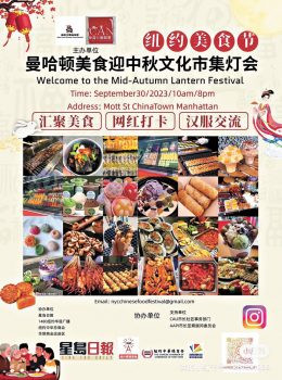 9月30日星期六早上10點,曼哈頓美食迎中秋文化巿集燈會在Mott St盛大舉行,民以食為天,當地華人華僑不僅在這場活動裏品嘗到家鄉的味道,會讓更多人體驗了解到中華文化的魅力,現場50個攤位在街道上,匯聚各品牌商家產品展示,百多種特色美食。敲鼓響鑼50條獅頭一條龍,百多身穿漢服的愛好者,十多個專業表演團隊在美食節的街上慶祝,熱鬧非凡,節目流程,12點漢服集合以及派1000個燈籠,1點半50頭舞獅隊在街道上,1點拍唐人街宣傳片鏡頭,下午2點開幕儀式,4:00古韻中秋晚會和戶外盆菜宴,6:00拍唐人街宣傳片鏡頭以及派燈籠。6點後舞台DJ音樂1到1個半小時。整場節目12點到8點左右。創辦人全美星島日報梅建國、創辦人總導演張雪青表示,今次活動得到各界人士讚許和支持,商家們為支持活動,知道最近天氣多變,堅持風雨不改繼續參加活動,年輕一輩漢服愛好者及表演團隊也踴躍出來支持活動,每位支持活動人士都期待這場活動已久,傳統之中創新,為華人聚居區增加了更多色彩,大家團結一起努力把華人聚居區該有的環境熱鬧起來,主辦方會繼續努力辦好每一場活動,有你們的支持是主辦方最大的動力。主辦方華裔行動聯盟、紐約中華美食節敬啟,詳情咨詢929-888-0834,Email:[email protected]、Instagram,@chinese_food_festival_nyc,小紅書、抖音、YouTube搜索紐約中華美食節了解更多活動詳情。本報訊
