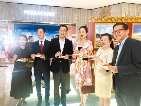 郭少春及夫人王薇與來賓,品月餅、過中秋。記者陸新攝