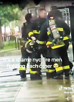 一段令人震驚的TikTok視頻,拍下兩名紐約市消防員在傾盆大雨中發生爭吵,一名消防員大喊說,「從我臉前滾開!」而其他在場消防員則試圖制止打架。