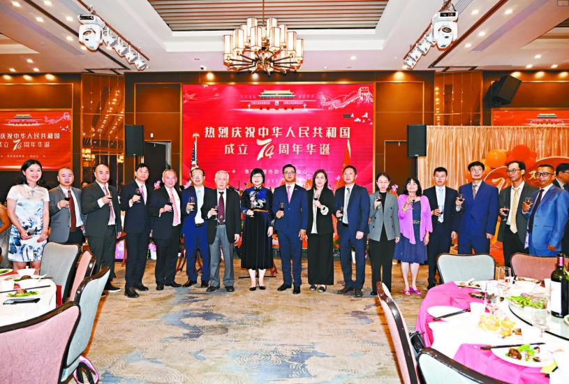( 僑社記者馬紅兵報導 )美西福建僑團於9月22日晚假座南三藩市半島豪苑舉行慶祝中華人民共和國成立74週年晚宴。中領館副總領事鄒永紅、領事姚瑤、宋雨桐;大會榮譽主席池洪湖、楊長城、潘建平、林紹長;大會主席楊寶海;大會共同主席黃禎祥、鄭君凱、陳文琛、林世勇、鄭奇、陳華松;秘書長林延奇;王靈智教授、星島日報社長梁建鋒;中華總會館總董暨寧陽總會館主席李燦桐、三邑總會館主席楊國興、中文助理李殿邦;舊金山灣區中國統一促進會理事長池洪湖、副理事雷振澤、雷華欽、第一副會長黃楚文、第二副會長麥永康;中藥聯商會會長劉源凱;美洲萃勝工商總會元老鍾紹元、梁永昌、李仕聰、溫容鏡、朱樹榮;金門協勝公會元老陳日初;美國華商總會會長孫志雄、常務副會長譚念貼、副會長孫志中;北加州廣府人人聯誼總會創會會長張冠榮;北京同鄉會會長何孔生女士;北加州和統會會長戴錡、副秘書長鄒志強;美華和統會會長伍時江等嘉賓蒞臨,共襄盛會。全美福建工商總會會長顧問楊長城、潘建平、劉琦、劉磊、紀中生博士;會長黃禎祥、副會長鄭家暾、楊寶海;顧問楊長城、潘建平、劉琦、劉磊、張炎、陳鎮峰、杜子文、何一峰先生、祝良律師;美西福建同鄉會榮譽會長林秉森;會長鄭君凱;監事長陳忠星;副會長薛善友、副監事長曾建新、鄭大清、秘書長謝鷹華;金山八閩同鄉聯誼會會長鄭奇、秘書長林智仁;福建人在灣區聯誼會永遠名譽會長池洪湖、永遠顧問陳展明、會長楊寶海、執行會長林敏婕、副會長楊曉川、江華超、秘書長黃宗江;福建平潭同鄉會會長陳華松、副會長陳友美、念其洪、秘書長姚賢康以及福建工商總會西雅圖支會、波特蘭支會;芝加哥福建同鄉會等福建鄉親出席聯歡。