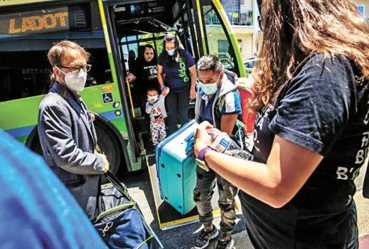 上周五剛剛又有三輛載著百餘名移民的巴士從德州抵達洛杉磯,這是迄今為止單日人數最多的一批。