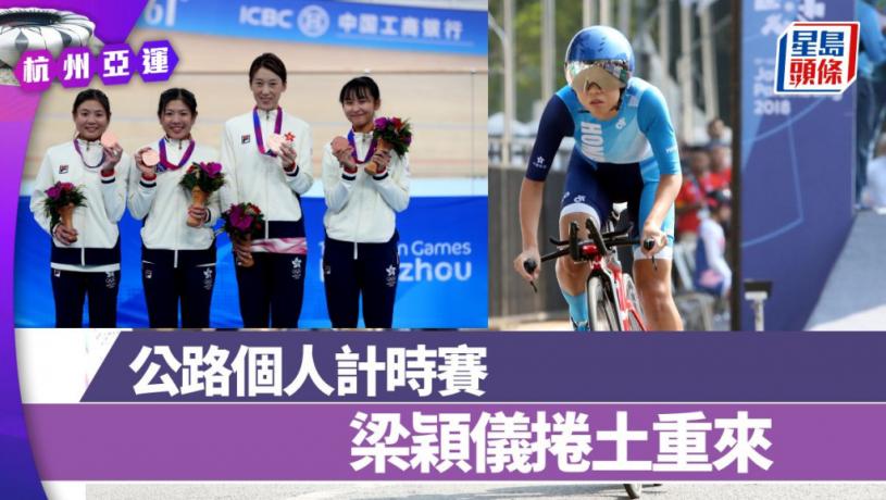 梁穎儀今屆亞運與姐姐梁寶儀、楊倩玉和李思穎贏得團體追逐賽銅牌,小休幾日後在淳安界首體育中心公路自行車賽場出擊。她在公路個人計時賽爭牌對手,除了國家隊車手王亭亭、中華台北粉紅小鋼炮黃亭茵之外,還有連續兩屆亞運公路個人計時賽奪金的南韓名將羅雅凜,這位老將同時是去屆公路賽金牌得主。另外日本老將與那嶺惠理去屆亞運公路計時賽摘銀、公路賽奪銀,同樣不容忽視。