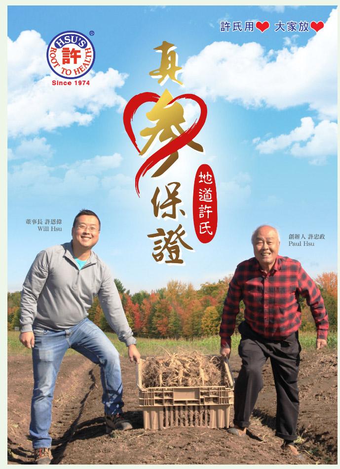 許氏位於美國威州沃沙市的許氏花旗參場,成立於1974 年,為美加首家華人花旗參農場,其轄下擁有五大農場,涵蓋擁有超過1000多英畝的種參處女地,由許氏參廠出品的新鮮參,品質完全符合美國農業部核訂農場生產規範最高標準GAP製作過程,依規定自農場採收後,經過了三口一百多公尺的深井所抽打上來的純淨井水兩次清洗後,再加上細心地人工檢選,才能包裝空運到各地銷售,絕對保證提供最純淨的健康,值得消費大眾的放心信賴。許氏參業也特別強調,經過農業部標準生產的新鮮花旗參,除了完整保留了威州新鮮參特有清香口感與天然養分外,同時也提高了保存的期限。而市面上其他未經過標準規範清洗處理的新鮮參,保存期限則相對較短,且生產品管過程的參差不齊,也可能會影響了消費者的食安權益。尤其加州客戶要特別注意,根據州政府明文規定,凡特定地區進口的根莖類植物,均不准許以有土壤的形式進入加州銷售,限定的地區包括威斯康辛州在內的全美近40個州及加拿大地區。
