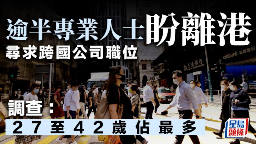 調查顯示,有超過50%的香港專業人士考慮離開香港,15.6%專業人士希望盡快離開,而36.7%專業人士則考慮未來3至5年離開香港。在計劃離港的專業人士當中,51%的受訪者年齡介乎27至42歲,38%介乎43至58歲。