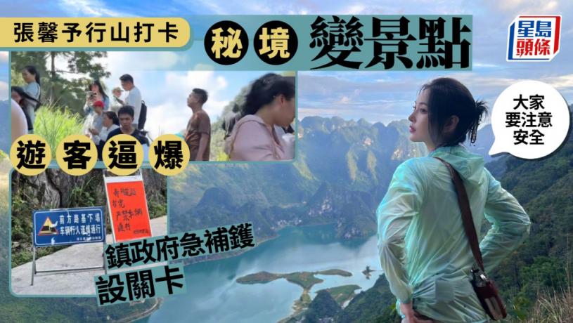 內地女星張馨予中秋前在廣西行山打卡曬美照,意外令一處私房景點變網紅熱點!許多人趁中秋國慶長假去拍攝同款風景,但由於該處非正規景點,沒有相應的管理措施,鎮政府急急考慮加設安全設施,張馨予也發微博呼籲大家注意安全。