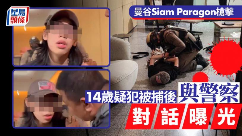 泰國曼谷著名商場Siam Paragon(暹羅百麗宮)發生槍擊命案,釀成多人死傷。網上流傳一段涉案14歲槍手被捕的影片。當時少年被制服後與一名警察的對方。