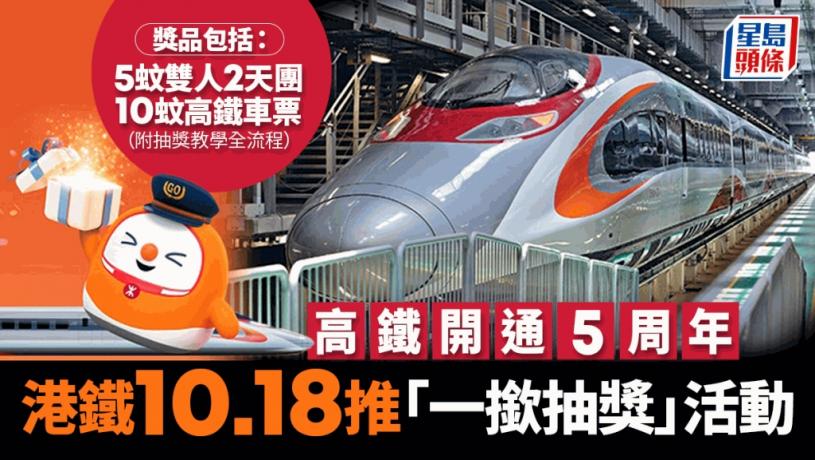 為慶祝開通5周年,高鐵於2023年10月18日於MTR Mobile舉行「一撳抽獎」活動,送出20,000份禮物,包括以 $5購買高鐵雙人2天團,名額500個,或以低至港幣$10購買高鐵車票等,名額19,500個,獎品總值超過240萬。