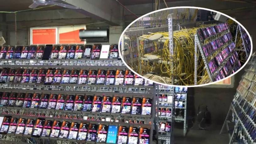 經過近3個月偵查,9月30日晚,碭山警方將24名疑犯抓獲,查封13個涉案機房窩點,扣押涉案手機2.6萬多部。從網上流出相片所見,涉案機房內有大量手機被集中放在手機架上,手機背後更有無數疑似充電線,相信用作手機不停自直播數據之用。