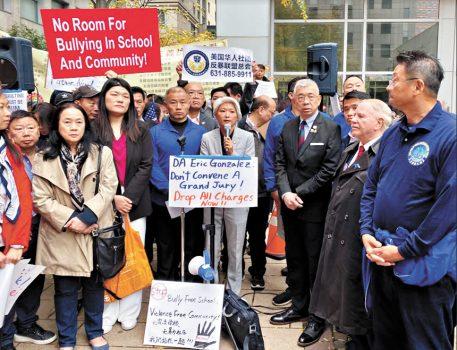 為繼續就布碌崙201華裔初中生遭霸凌案向布碌崙地區檢察官辦公室施加壓力,十餘個華裔社區組織、數位民選官員、以及華裔家長等逾三百位華裔於10月30日,在布碌崙地檢官甘沙樂(Eric Gonzalez)辦公室外與市教育局外集會,要求檢方撤銷對13歲華童的父親雷先生的所有控罪,重判暴打華生的沙安(Hassan Saab),並要求市教育局依法制定全面的反霸凌計劃。甘沙樂在30日的一份聲明中說,打算駁回對雷先生的指控,而且計劃將沙安的案件提交至大陪審團。