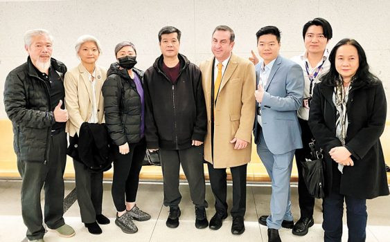雷廷鐸(左四)在庭審後與多位支持者合影。 張之銘攝