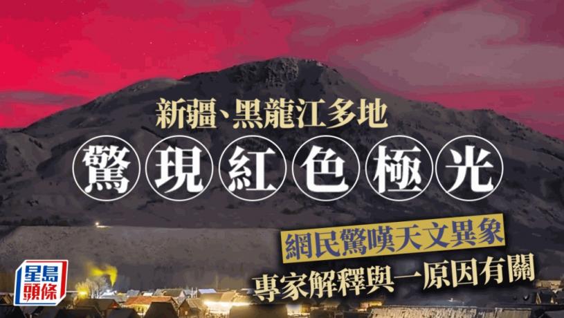 11月5日夜間至6日凌晨,多位攝影愛好者和遊客在黑龍江漠河、新疆烏魯木齊、阿勒泰等地拍攝到了神奇的「紅色極光」美景,夜空中,閃爍的繁星與極光相遇,宛如紅絲絨上鑲嵌的鑽石,絕美景象讓一眾網民大讚不已,還有人戲稱是「王母娘娘在開P」!據了解,此次新疆多地出現極光,主要是受近日劇烈日冕物質拋射活動影響。