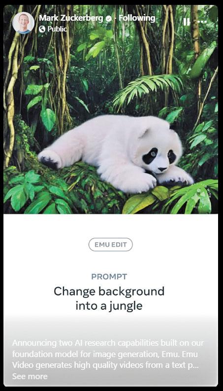第一項功能稱為Emu Edit,將讓用戶可以「根據文本輸入精確修改圖片」。從視頻演示看,它與Adobe、谷歌和Canva的現有工具類似,為用戶提供了一種無需任何專業圖像編輯經驗即可刪除或替換照片中的物體和人物的方法。