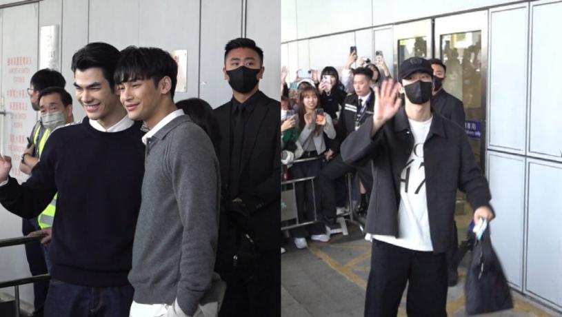 另外,泰國BL劇《黑幫少爺愛上我》兩位男主角Mile(Phakphum Romsaithong)與Apo(Nattawin Wattanagitiphat)亦在15分鐘後現身,今年初演出後再度合體襲港,二人顯得親切又駕輕就熟,步出VIP通道外小空地後,便走近兩旁守候的粉絲讓大家取鏡影相留念,期間笑容不斷又不停揮手,逗留約一分鐘後才分別登上接送車離開。