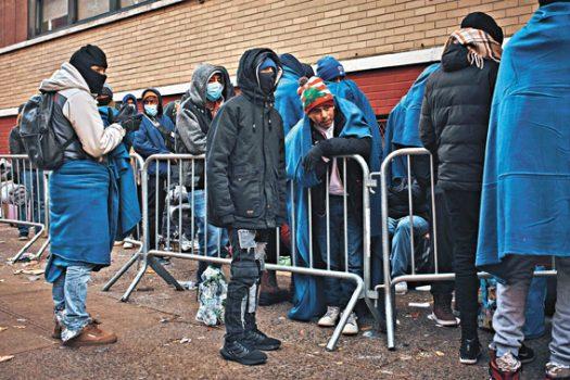 大量移民排隊希望返回紐約收容系統。 美聯社