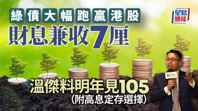 凱基亞洲投資策略部主管溫傑表示,近期綠債升勢明顯,主要受市場預期美國聯儲局於明年下半年開始減息所致,令綠債回報更具競爭力。他預計,綠債債價會持續上升,至明年下半年可能見104元或105元的水平。