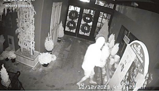 據ABC 7電視台新聞報道,10月12日,羅傑花圃監視器畫面捕捉到嫌疑人將大型盆栽植物和樹木裝進購物車,然後運上卡車離開。