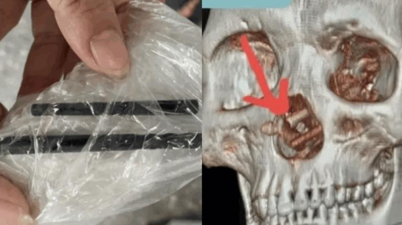 一名越南35歲男子因過去五個月來持續劇烈頭痛,苦楚難當不得不到醫院診治,當醫生為他做完電腦斷層掃描(CT 掃描),馬上令眾人大吃一驚,原來男子顱骨竟插進一雙筷子!