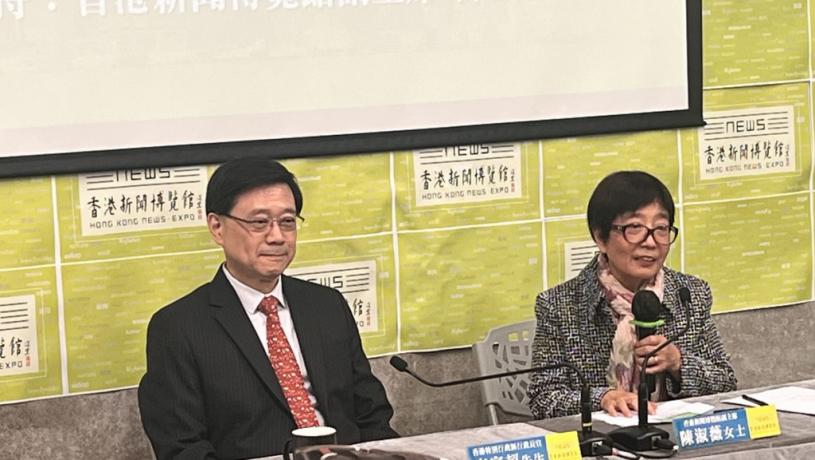 仍有約一星期就到區議會選舉,行政長官李家超今午(2日)出席新聞博覽館5周年座談會時,強調今次區議會選舉肯定會為香港帶來更好的社區,單是目前推動投票時,已能看到社會團結了很多,整個政府團隊更是積極推廣,團隊精神向正面發展令他感到告慰。被問到市民若不投票有何損失時,李家超強調一定是有損失,「因為你最想佢出嚟做嘢嘅區議員是第二個喎,咁你唔會㗎嘛,你鍾意嗰個人梗係追佢㗎嘛,咁我所以先得到我太太垂青啫。」引來全場哄笑。