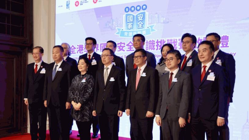 由律政司、教育局、保安局及香港善德基金會共同舉辦的全港學界國家安全常識挑戰賽啟動禮。中國日報聯合採訪圖片