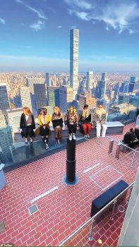 綜合《紐約郵報》及英國《每日郵報》報道,儘管下著雨,1日下午仍有許多人為在「樑」上一坐而排隊。來自喬治亞州的67歲女遊客與2名孫女同行,她說,雖然恐高的她在旋轉時感到緊張,「這真的很可怕,但也很有趣」。
