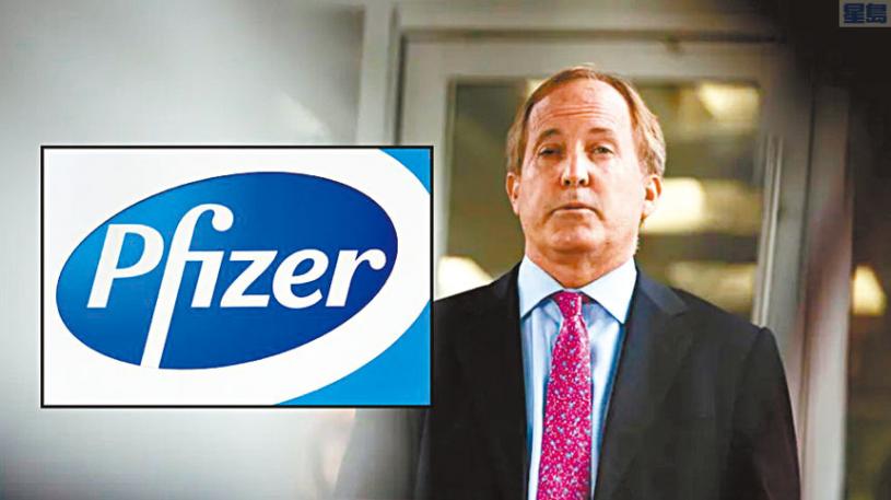 德州總檢察長帕克斯頓(Ken Paxton)起訴輝瑞藥廠(Pfizer),指責對方「故意」誇大新冠疫苗效果,因此求償1000萬元。
