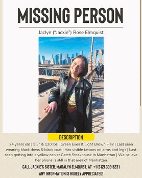 埃爾姆奎斯特在招聘公司Mission Staffing工作,她的表親在X上發文稱,她曾參加過曼哈頓一個工作聚會,但從未回到布碌崙住所。