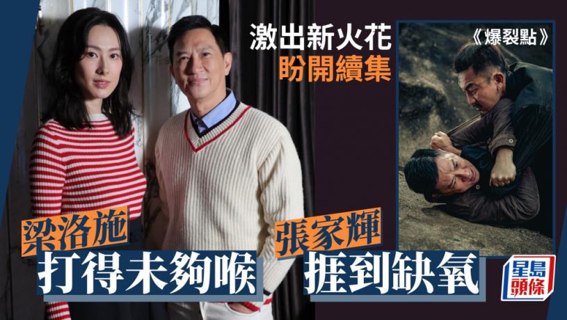 張家輝在英皇新戲《爆裂點》中除了與老拍檔林超賢再次合作,更有不少新拍檔如陳偉霆和梁洛施,新鮮感十足。張家輝和梁洛施日前齊齊為新戲宣傳,談及首次合作,張家輝稱未認識梁洛施前,覺得她又靚又年輕,是一個很有演戲潛質的女演員,合作後更覺她今次遇到好角色,大讚她的角色反差大,是每個演員都夢寐以求的事。梁洛施則很開心能與張家輝合作,笑小時候就看他的電影,「化骨龍」形象深人民心,當家人知道她與張家輝合作時,家人都很興奮,不過她嫌今次對手戲不多,望再有合作機會,張家輝即笑指他們在戲中都沒有死,或者可以再拍續集。