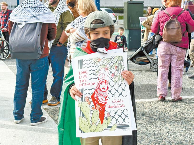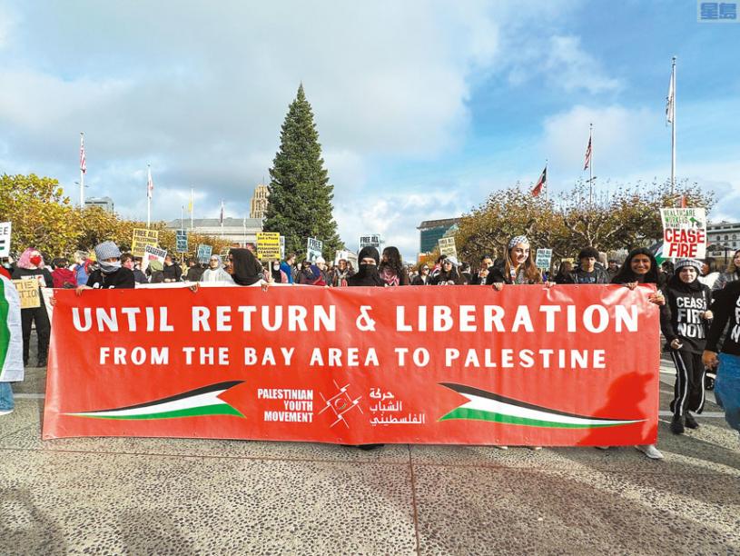 近日以哈停火結束,戰火重燃。灣區民眾周六下午再次在三藩市市政廳前召開大規模集會遊行,要求以色列立即永久停火。現場聚集了約三四百人,市民廣場再次被一面面巴勒斯坦國旗及各式反戰標語所佔領。