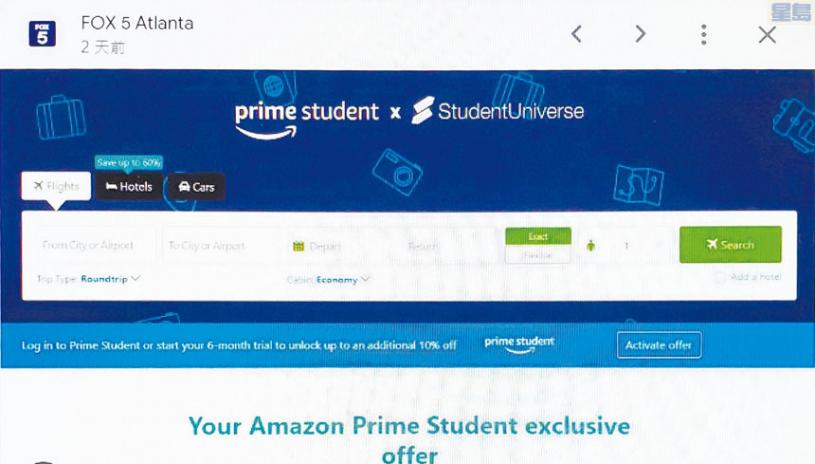 促銷活動從5日開始至7日結束,每天會有1000張機票的名額,搶購時段從早上6時開始,擁有Prime會籍的學生,可前往Prime Student x Student Universe的門戶網站一試運氣。