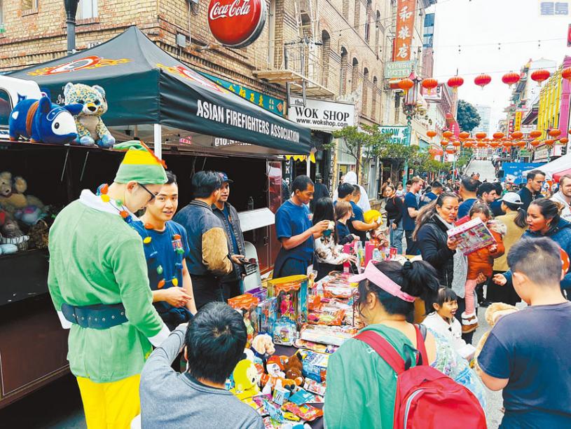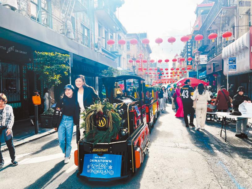 聖誕節昨天似乎提前降臨三藩市華埠,滿載歡聲笑語的小火車、漫天飛舞的「白雪」、孩子們抱著聖誕節禮物喜出望外、聖誕歌曲此起彼伏。