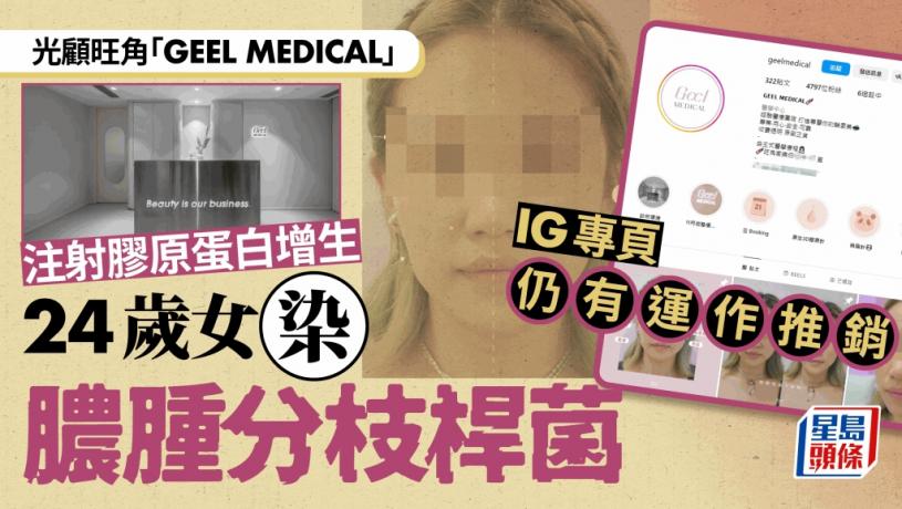 衞生署衞生防護中心指,一名曾光顧「GEEL MEDICAL」(社交平台Instagram名為 「geelmedical」)的女子接受美容注射後感染膿腫分枝桿菌。中心正調查事件,並呼籲曾光顧「GEEL MEDICAL」及接受相關注射或懷疑出現相關症狀的人士,應盡快求醫及聯絡中心。《星島頭條》記者晚上登入有關社交專頁,發現其截至晚上9時仍然運作,當中有多篇帖文推銷「溶脂針」及「膠原蛋白」注射等美容產品。