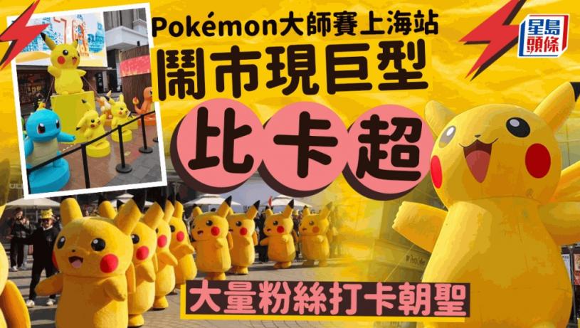 寶可夢大師賽(Pokémon Masters League)將在16、17日於上海國家會展中心舉行。近日上海鬧區街頭出現巨型比卡超充氣公仔以及眾多寶可夢展示品,為上海賽事預熱,吸引不少遊客與粉絲駐足拍照。