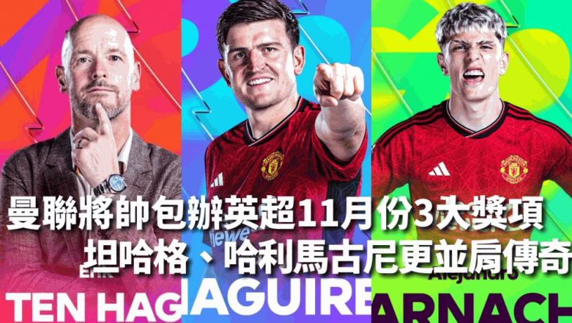 英超賽會周五公布11月份各個個人獎項的得獎名單,曼聯包辦3個大獎,主帥坦哈格當選最佳領隊;中堅哈利馬古尼和翼鋒阿歷真度加拿祖就分取獲取最佳球員及最佳入球獎項。坦帥更成為紅魔歷來第2多贏得英超每月最佳獎項的領隊;馬古尼就是隊史第3位取得最佳球員的守將,並肩尼曼查維迪和里奧費迪南兩大名將。