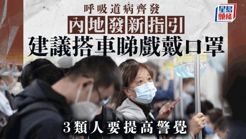 內地呼吸道疾病增多,多種病毒同時流行,國家疾控局今晚(9日)發布佩戴口罩指引,要求前往醫療機構及脆弱人群集中場所戴口罩,並建議民眾搭乘公共交通工具、進入人員密集,感染風險高場所,如醫院、養老機構及托兒扇等,應戴口罩。
