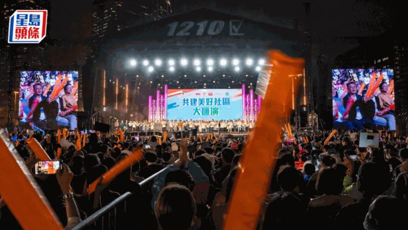 「共建美好社區大匯演」由7時到10時舉行,早前「大匯演」主題曲《獅子山下 共建美好社區》曝光,由鄺美雲打頭陣,一眾藝人合唱,包括譚詠麟、Chilam張智霖、炎明熹、劉威煌、許靜韻、蘇永康、鍾鎮濤、歐瑞強、張衛健、車沅沅、李龍基等歌手,以及「麥包」麥長青、阮兆祥、黎耀祥、陳豪,還有由劉丹率領一眾《愛 ‧ 回家》演員。
