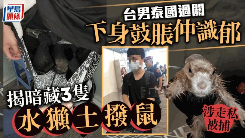 一名22歲台灣男子赴泰旅遊,買了幾隻小動物圖偷運出境,竟塞入內褲直接闖關。他因「下身鼓脹還會晃」,被海關詳照X光、搜身查出2隻水獺和1隻土撥鼠,當場就逮。