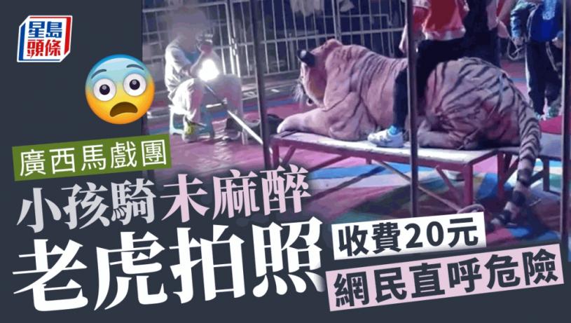 廣西百色一個馬戲團被指收費讓孩子騎真老虎拍照,老虎被綁住但沒有打麻醉藥,不少網友擔心安全問題,直呼看着太危險。據報文旅局派人調查後,已下達《責令整改通知書》要求立即停止演出,並立案處理。涉事馬戲團已停止演出。
