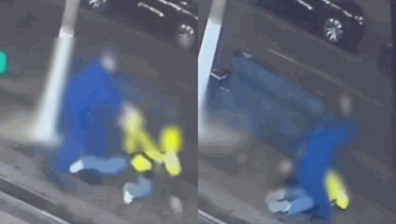 網傳影片顯示,該名保安追着外賣員,失控似的狂插多刀。一番糾纏後,外賣員倒地,保安還騎在外賣員身上繼續施襲。
