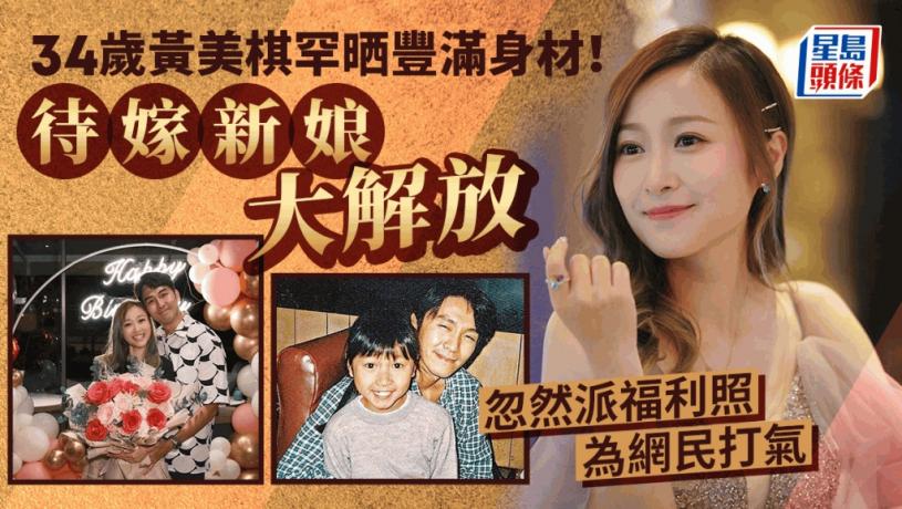 34歲童星出身的黃美棋8月生日時獲男友鍾健威(Ray)求婚成功,黃美棋在IG向未婚夫鍾健威撰寫情書,公布明年結婚的喜訊。黃美棋這位待嫁新娘向來好身材,但早已名花有主的她並非時時晒好身材,近日黃美棋罕有在IG分享福利照為網民打氣,閃爆晚裝露出事業線,即時狂吸Like。